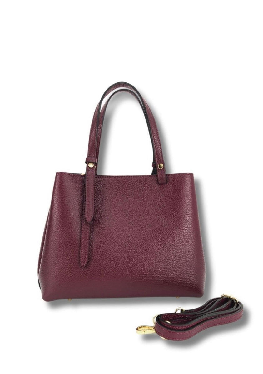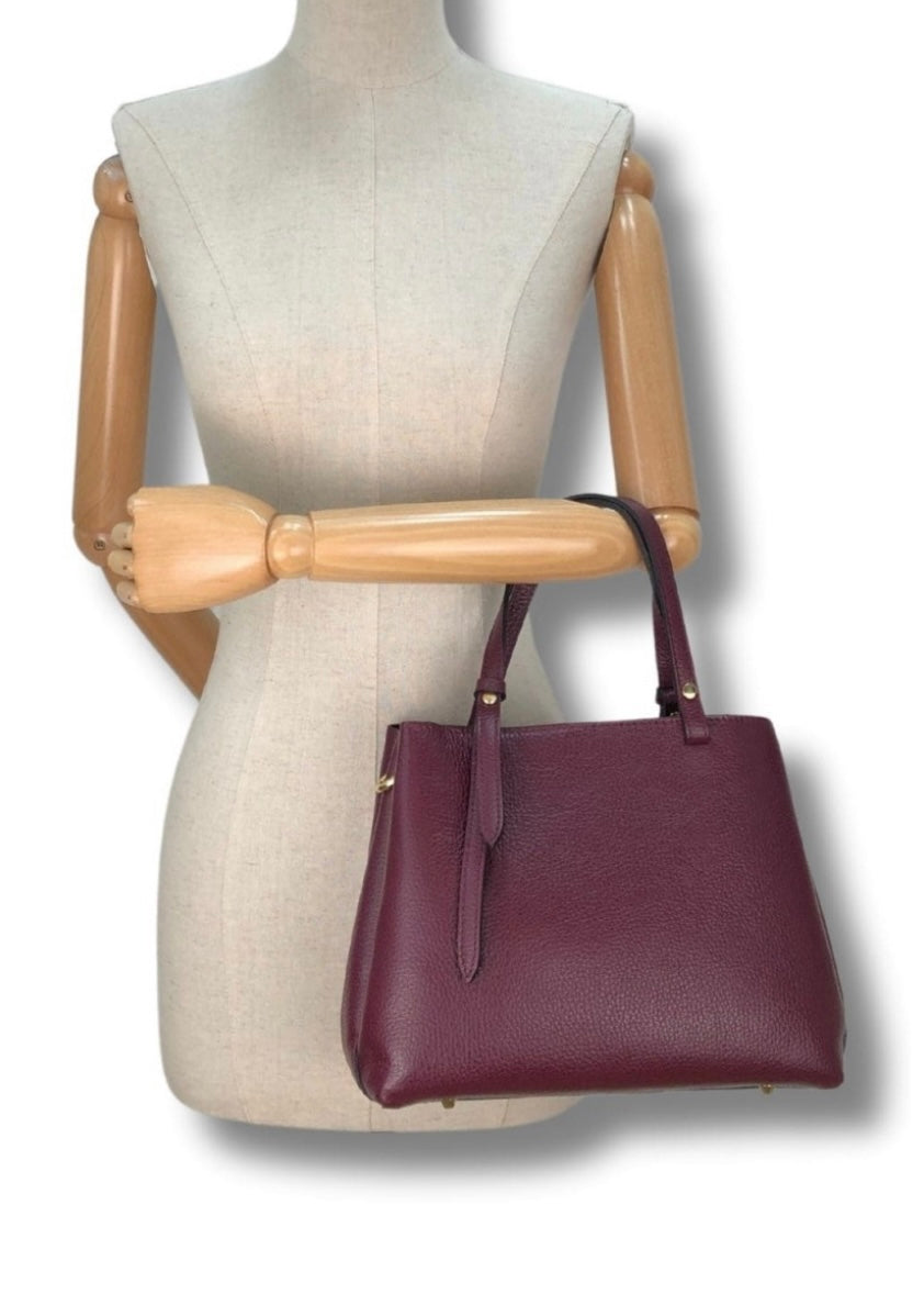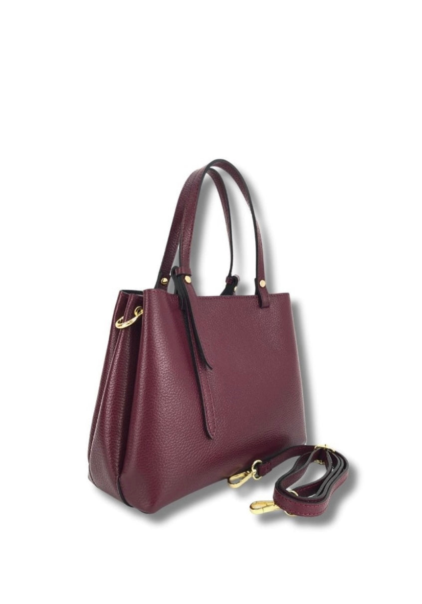 Mala em pele gravada com três compartimentos fechados com íman e fecho de correr.